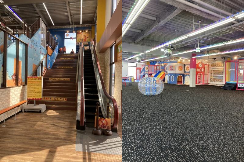 ある程度食べ終わったら子供とともに2階のキッズスペースへGO。入り口に下駄箱があるので靴をぬいで入りましょう。