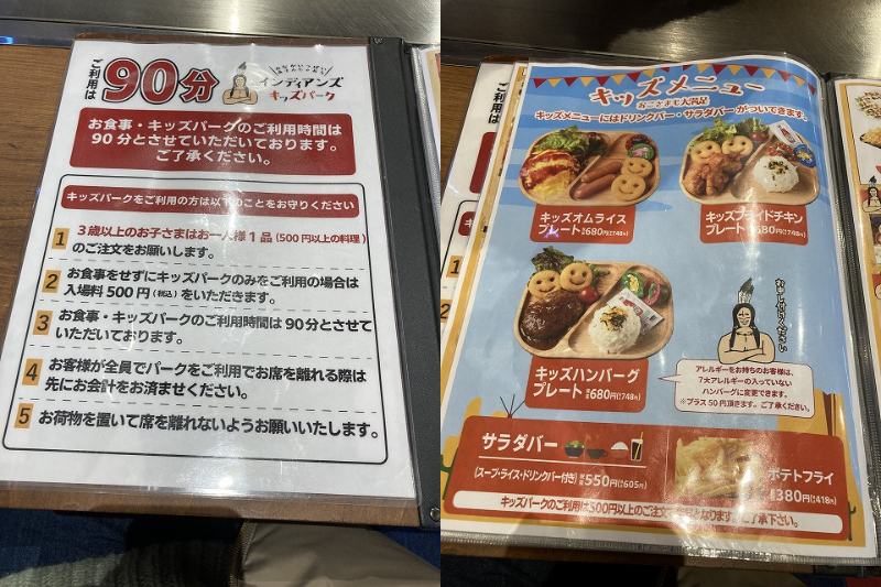 3歳以上の子供は1人1品(500円以上)の注文が必要な点に注意ですね。